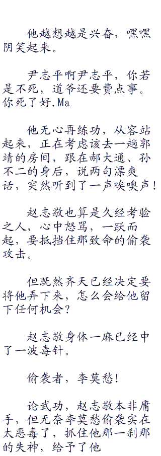 神雕侠侣 第章 齐天算计,偷袭赵志敬!5更 郭靖此时虽然重伤,但性命无害,刚才的焰火,是朱子柳放出的。