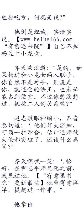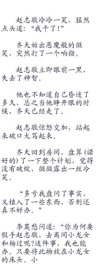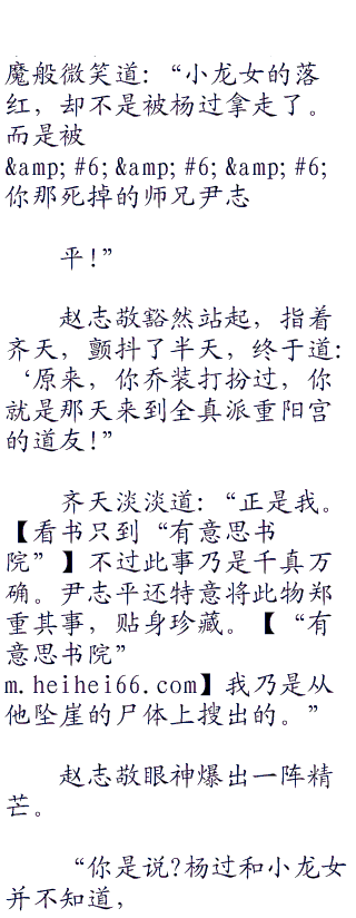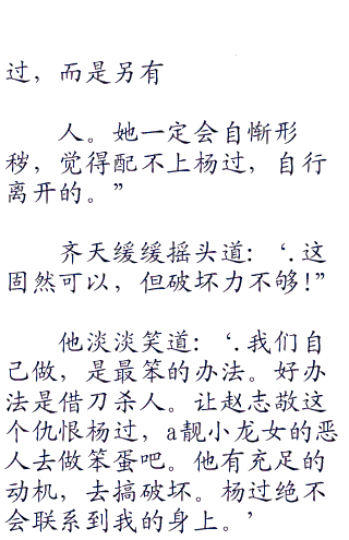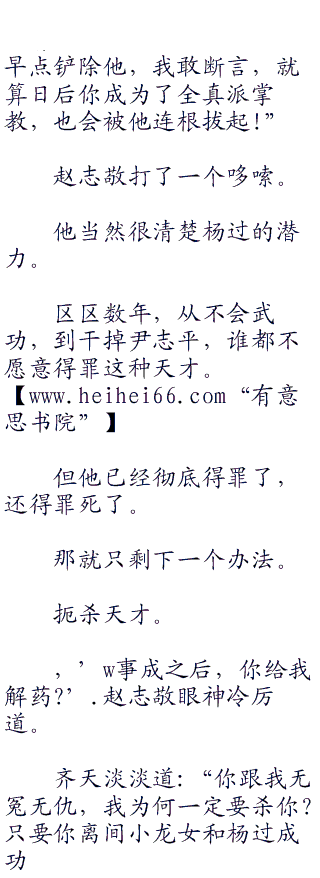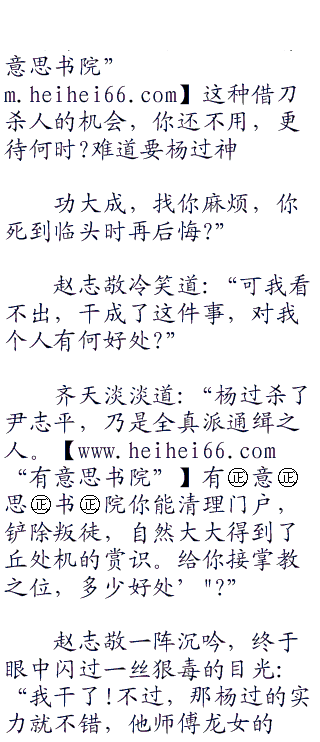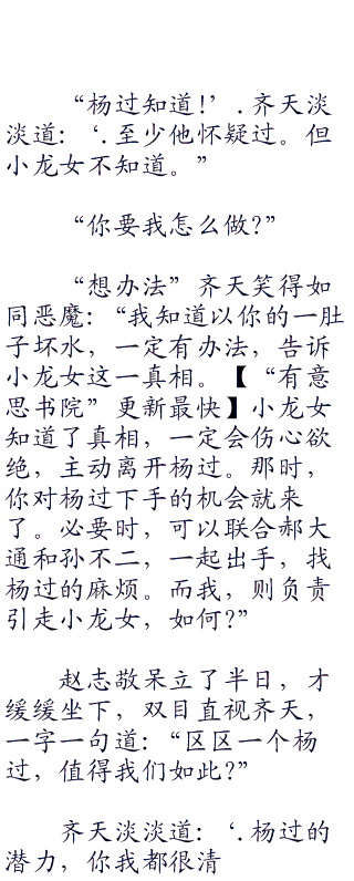 齐天冷冷道:‘.恰好杨过因为尹志平之死,开罪了你全真派,你顺水推舟,即