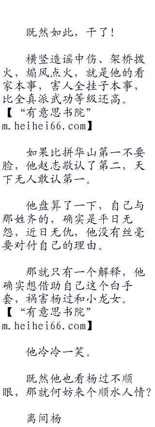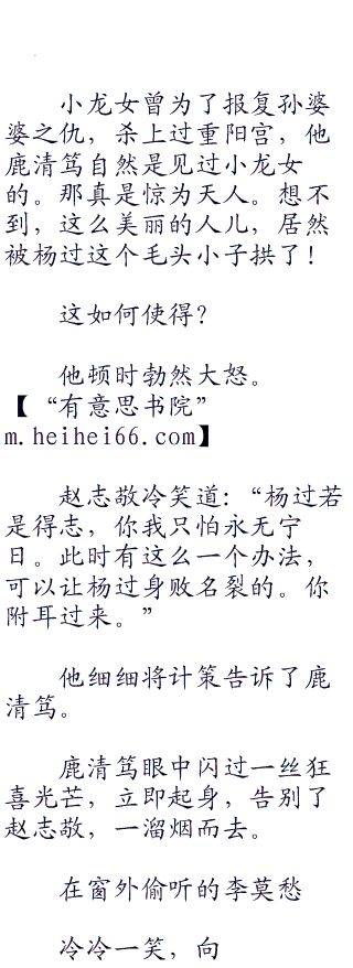 神雕侠侣 第章 恶赵志敬!阴谋计划! ,’万一他将此事告诉孙不二或郝大通呢?万一他解除了毒素呢?’.李莫愁追问道。