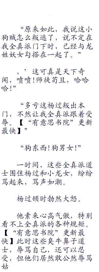 神雕侠侣 第章 毒计连环!千夫所指!3更! 他乃是聪明绝顶之人,自然猜的出来,当时肯定是尹志平这个死鬼,占了小龙女的便宜。小龙女却误以为是自己做的。自己还傻乎乎问小龙女为何不叫她姑姑,要叫她妻子。