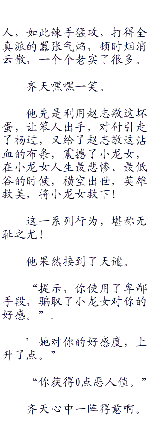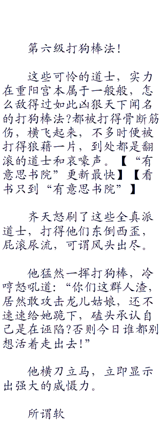 齐天冷笑一声:“看起来,你们全真派真是横行霸道惯了,连公理正义都不放在眼中!”