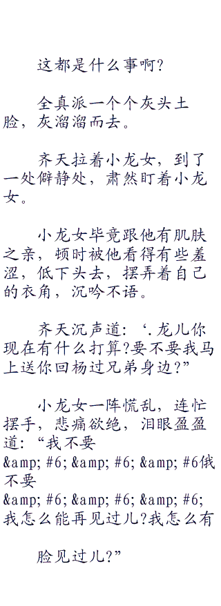 齐天爽的无以复加,厚颜无耻地拉着小龙女的手,哈哈大笑着走过了赵志敬的面前。