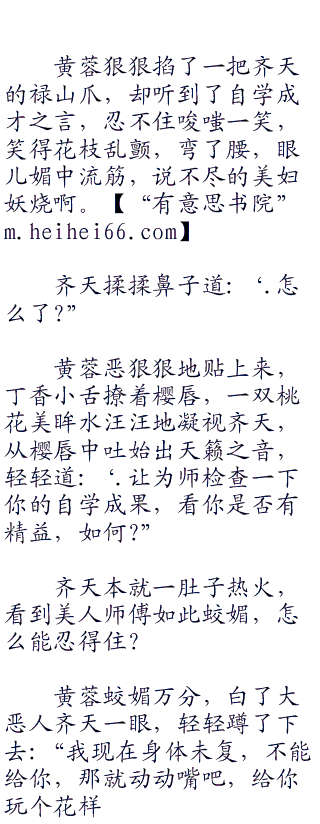 齐天充满邪气地深入其中,邪笑道:“蓉儿师傅,几日不见,你倒是变得更加美丽雍容了。”