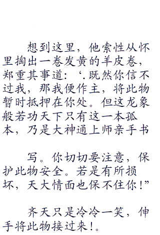 神雕侠侣 第章 毒计三连环!挑唆法王!3更! 如果大家记性不错,想必还记得齐天曾经巧遇了耶律晋,翻身进去,将耶律晋劫持过。他先将耶律晋打昏,并顺势搜查了他身,得到了此物。齐天当时并不知道有什么用,但看着金灿