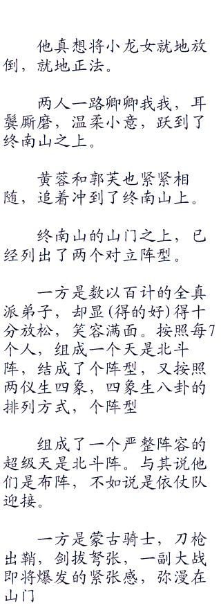 神雕侠侣 第章 美人倾心!全真祸临!6更! 小龙女羞得面色配红,低下臻首,声如蚊呐道二“我还不是你的女人。。 ww w ..co m”