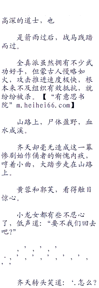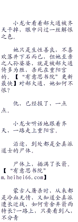神雕侠侣 第章 杀郝大通!激荡情怀!2更 蒙古骑士们速来杀人放火,动辄屠杀,做惯了这种残暴之事,既然上官发话,根本不问为何,只是齐声发吼,便木着脸冷冷杀了上去!