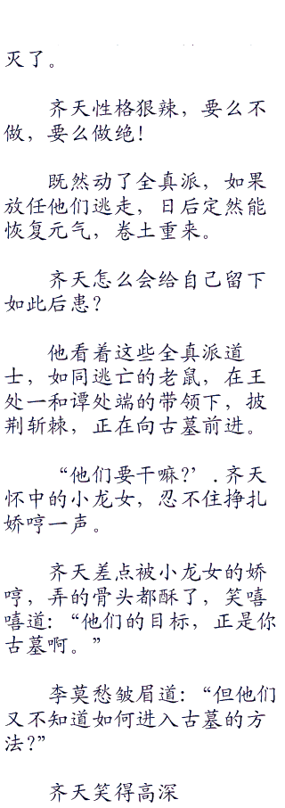 齐天感到小龙女那一双逼视的目光,心知如果他骗了杨过,他将永久失去小龙女。