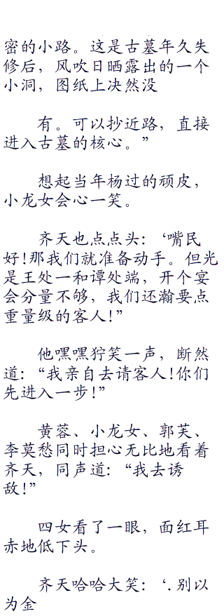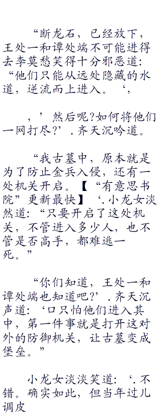 “但我上次侵入古墓时,师妹已经放下了断龙门,外面不可能进入古墓了’.李莫愁壁眉道。