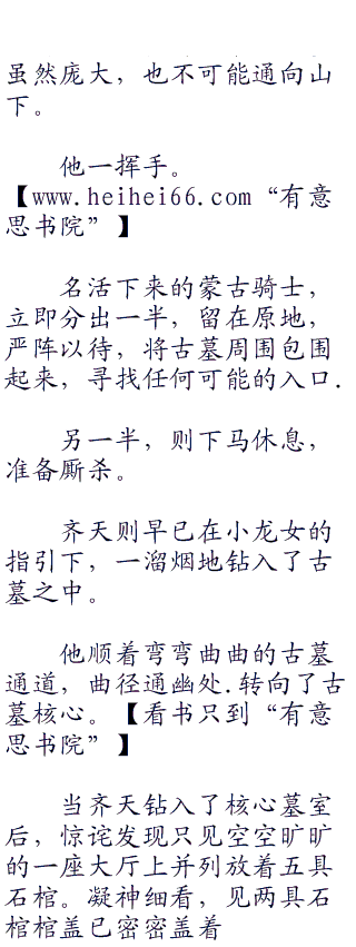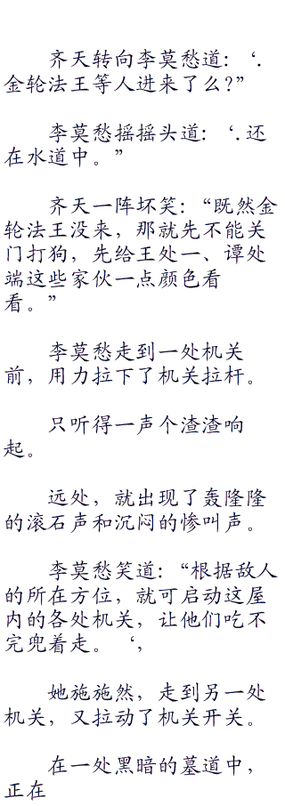 王处一和谭处端带着足足一百多三代弟子,进入了古墓,正在向这里慢慢移动。