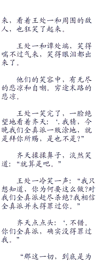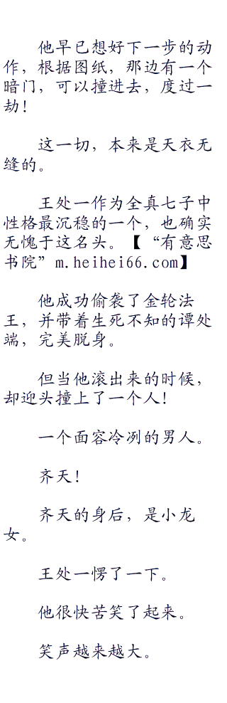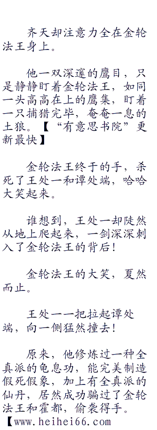 齐天在一旁,冷眼旁观,看着金轮法王大战王处一和谭处端,一边哼
