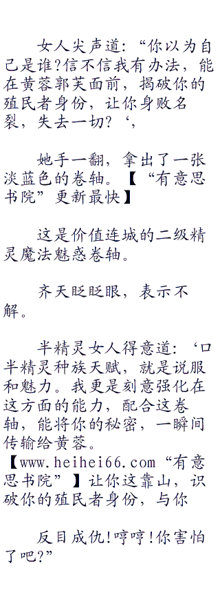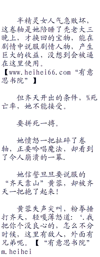这句话,让半精灵女人的脸憋得通红,却一句话说不出来,如同一只鸡正要鸣叫,却被卡住脖子,只能憋红脸,干眼眼!