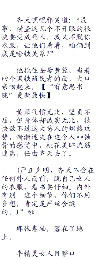 更让他崩溃的是,齐天大喇喇地坐着,那美得不可方物的黄蓉,居然很自觉地和女儿郭芙一起,站在齐天的身后,母娇女艳。黄蓉甚至主动给齐天摘了个桃子,娇喷着放入齐天的口中