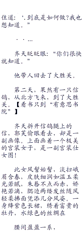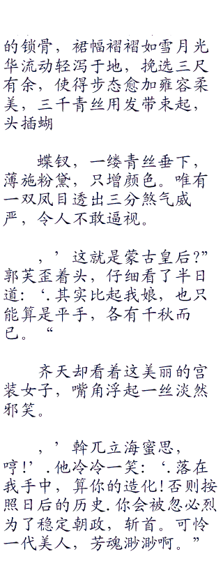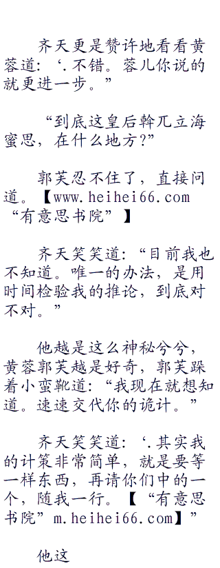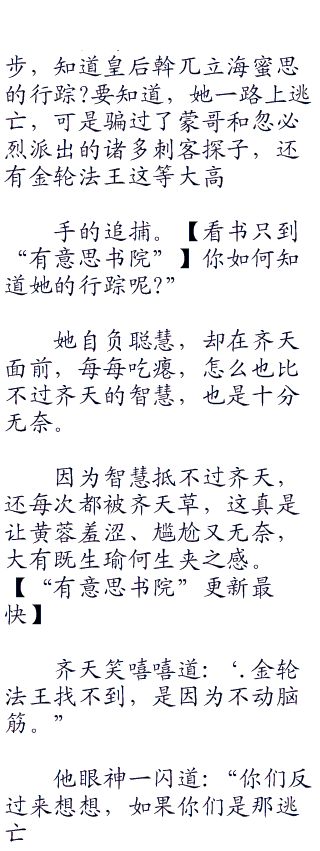 齐天笑道:“你可别激我。万一我要是找到了皇后斡兀立海蜜思,你该如何?”