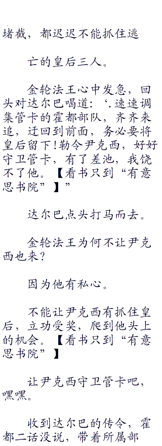 金轮法王皱起眉头,喝道:‘这管卡乃是要冲之地,不可仅凭尹克西的一面之词,就都弃守追击。霍都,你带人回去,严加防御,防止有人声东击西,渗透闯关,特别要盯住尹克西!”