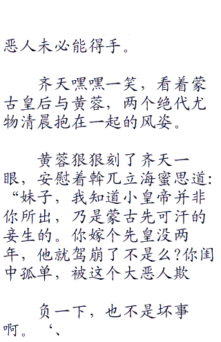 看着孔雀般骄傲、向自己挑衅的斡兀立海蜜思,齐天果然眼中透出无尽精芒。