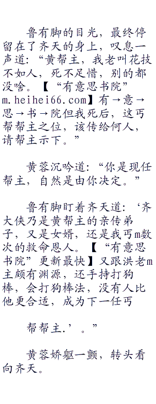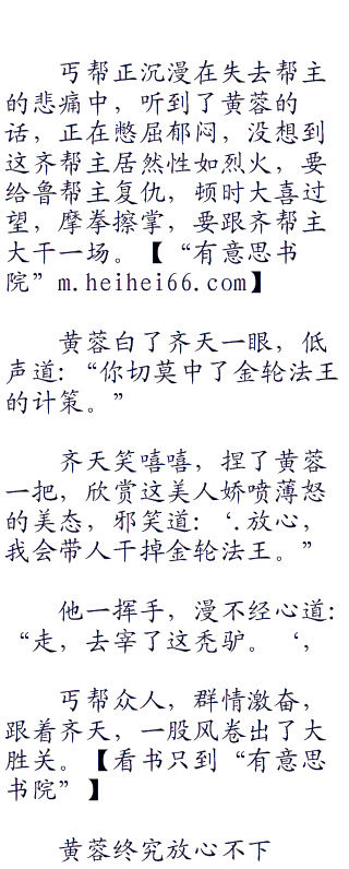 他最终交代了几句,向黄蓉苦笑道:‘.本来,老叫花打算跟随帮主,这次跟蒙古糙子轰轰烈烈,干上一场。没想到出师未捷身先死,被蒙古糙子偷袭而死,真是没用至极。”