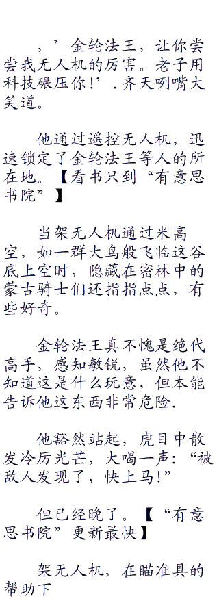 这些无人机,每台价格都在恶人值,可谓昂贵无比,但齐天早已智珠在握,兑换这么多无人机,为了能全歼金轮法王.值得!