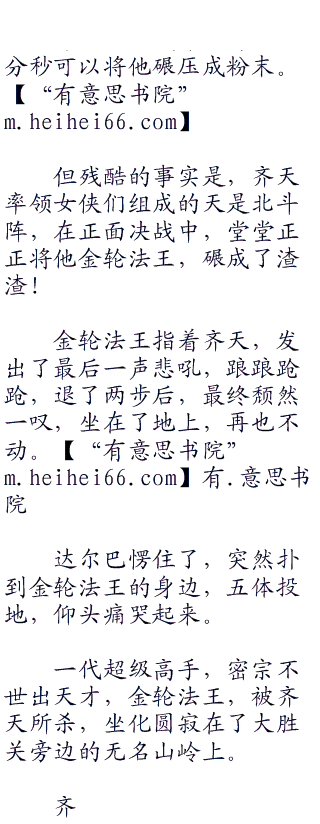 齐天咬牙坚持着,心中大骂道:‘.尼玛金轮法王,老子都这么死扛了你还不扑街?老子点先天真呈,都用光了你还不死?烂扑街仔,给我死吧!”