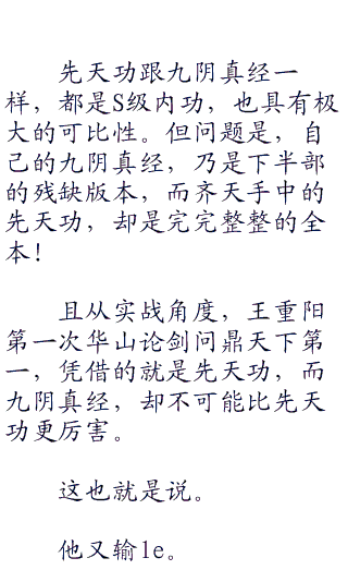 黄药师急于将脸打回来,他相信此人一定是在装逼。全真派何等大门派,被蒙古大军灭了他知道。但绝不相信是此人暗中下手。一气化三清这等a级剑法,他最多是捡了个便宜,还能有