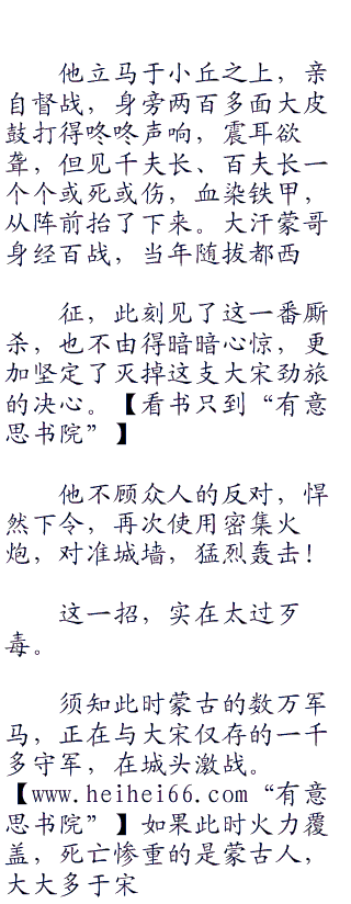 此时,大胜关上,能站立作战的宋军,已经容容无几,少数丐帮精锐弟子和雷狮、朱子柳等高手,还在黄药师的带领下拼死抵抗,大量杀伤蒙古人。但蒙古兵已经多处破城,数以百计