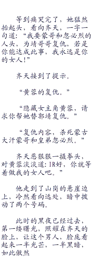 齐天环顾周围,发现周围蒙古兵,已经不怀好意,成百上千地逼近了过来。