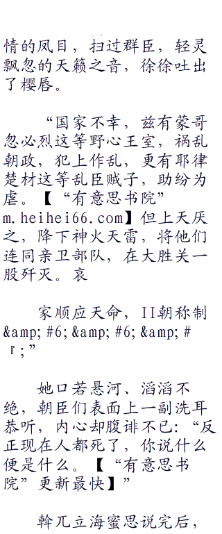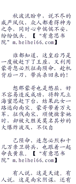 齐天傲然屹立在山岗上,静静看着斡兀立海蜜思的军队将蒙哥的军队,彻底吞噬,驱逐。
