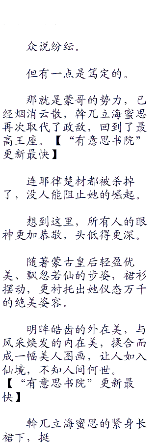 斡兀立海蜜思恢复了一贯以来的凤仪,威严道:“你等算是忠心,来的不算晚。但