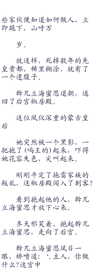 一名宗王首领,恭恭敬敬跪在斡兀立海蜜思的面前,他的背后是十余名万夫长,恭敬道:‘.恭迎尊贵的皇后,回大都重新临朝称制,垂帘听政。”