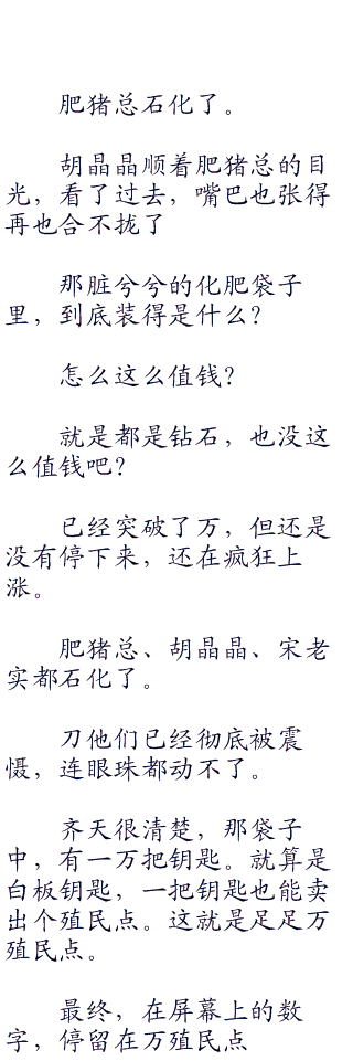 肥猪总气急败坏叫起来:‘嘛痹,就算你有点钱,也不够买这别墅。哼!