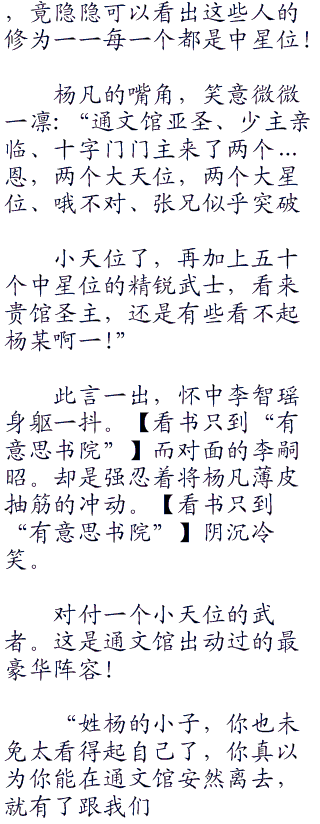 杨凡差点没忍住,发出舒爽之极的声音,不过瞬息间,他就强行压下心中绮念,目光扫视着通文馆的一众高手。