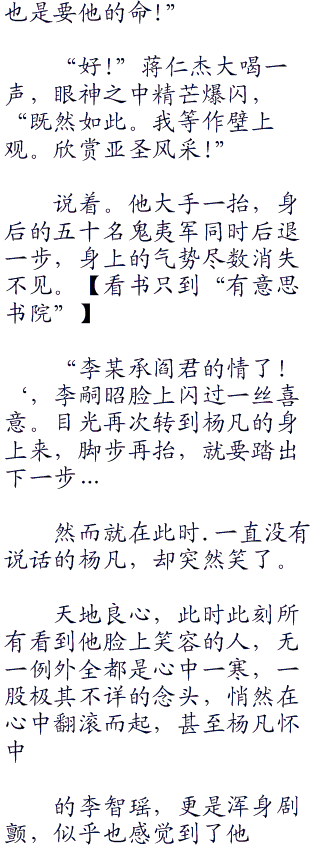 杨凡听的大吃一惊。这家伙这么吊?两个大天位的绝顶高手在面前。他竟然敢正面叫嚣?