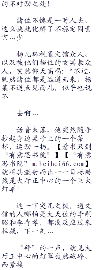 杨凡笑的很开心,通文馆和玄冥教的众人,可就笑不出来了。