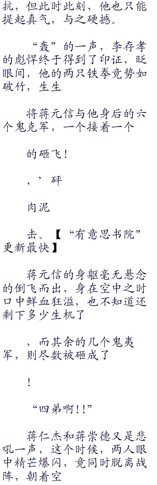 “唉!”蒋昭义身躯狂震,一口鲜血狂喷而出,身躯骤然倒飞而出,竟将身后的八名鬼夷军