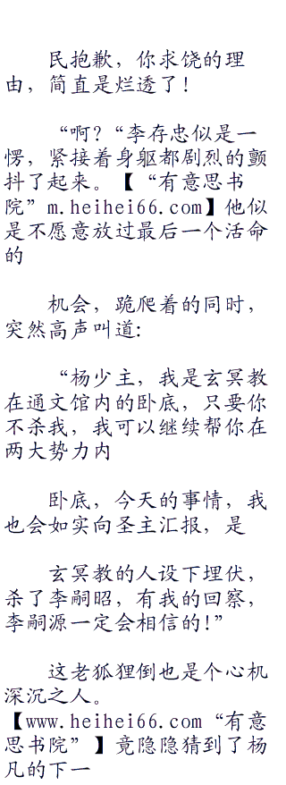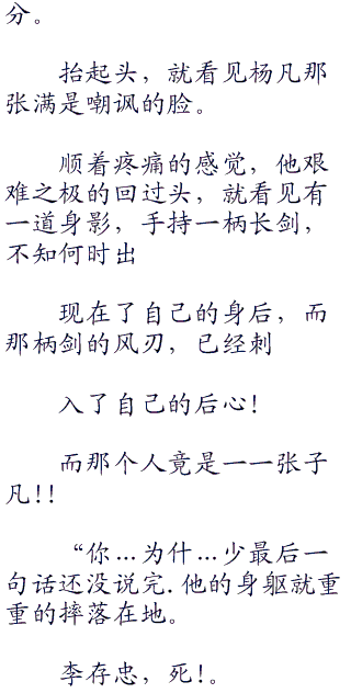 杨凡所有所思,想想也是,李嗣昭刚才要杀自己的时候。也根本不在意李智瑶的生死。