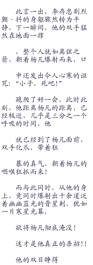 正思量间。另一边打算逃跑的李存忠。被妙成天和玄净天拦了下来,此刻一看见李嗣昭横死当