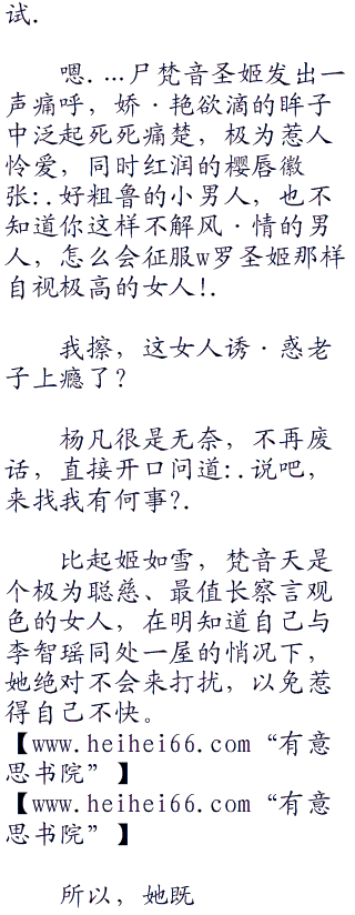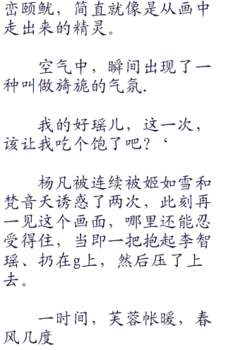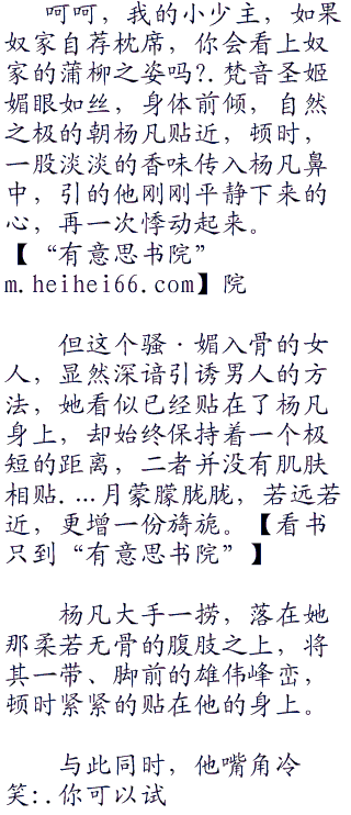 面对梵音天.杨凡调戏起来没有半点心理阻碍:.怎么?梵音圣姬见不得本少主孤独一人.所以打算自荐枕席呜?.