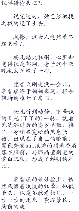 佳人余音绕耳.杨凡却很是无语.老子今天晚上不是走桃花运.而是犯桃花劫呜??