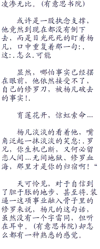 一时间,刚刚还打的热火朝天的有凤来仪阁,竟然陷入了诡异的寂静之中,所有人都陷人了沉思。。 ww w ..co m