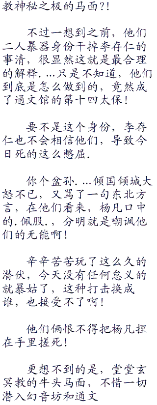 与李星云和陆林轩所想的完全不同,上官云阔所想的,却是另外一个问题:.此人到底是谁?他知遭不良人的秘密,与阳叔子又有何关系?难道,西莲一脉还有其他传人不成?!.