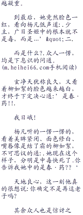 她说着,就踌在地上给柳如絮把起了脉,杨凡看到他的脸色虽然凝重,却没有什么紧张之色。
