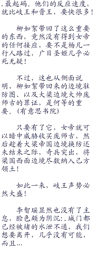 杨凡心中一凉,在这个时候,李智瑶她们不可能这么不恤事、来打扰自己,既然有人进来,那就说明.…