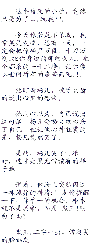 在他们愣神的时间内,杨凡已经距离他们越来越近,他的步伐,坚定、缓慢,眼神更是从头到尾,都盯着高台之上的黑无常。