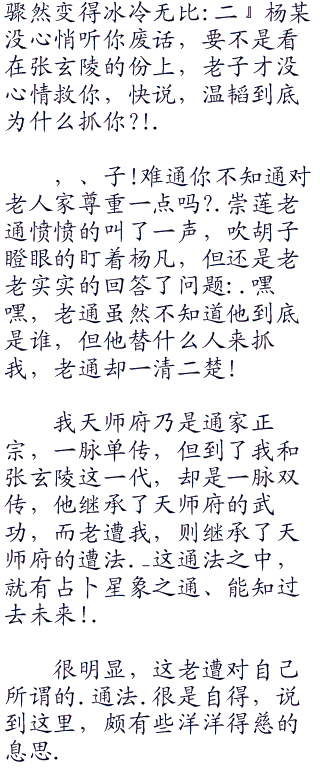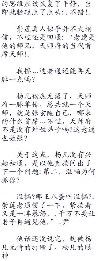 杨凡脸色诡异之极,死死的盯着老遭,还没说话,生性单纯的陆林轩却第一个开口了:.喂,老遭士,我们救了你,你不向我们遭谢就算了,还在我们面前骂骂咧咧的,知不知遭什么叫礼貌啊?’.