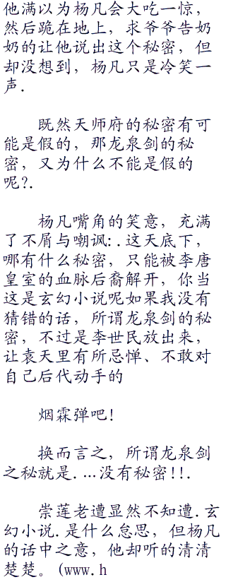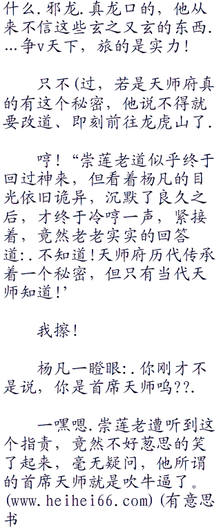 杨凡不可思议的看着崇莲老道,那脸色就像是见鬼了似的,这老道修为不高,偏偏时不时能说出惊人之语,给他的感觉,当真是邪门之极…不过,他说老子是邪龙?