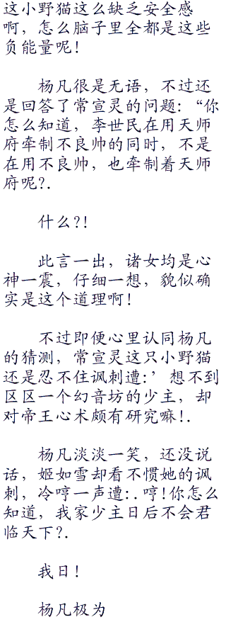 甚至杨凡的颐头,还出现了丝丝汗水他的战力虽然不弱于大天位,但论起内力水平,中天位的他还是比张玄陵弱了一分,是以这短短时间,他体内的真气竟消耗了一大半!.