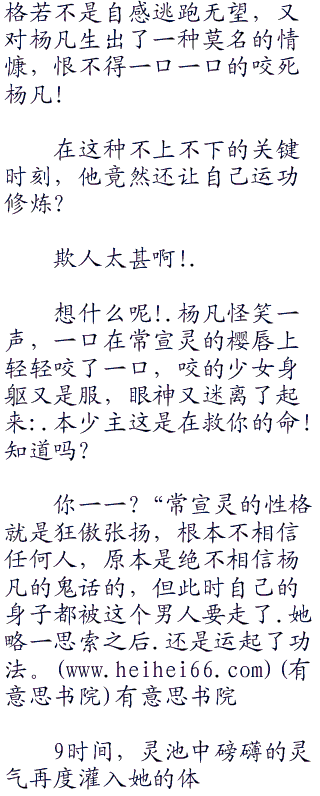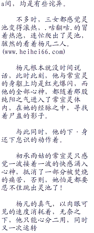 怀中楼着身材高挑的常宣灵,杨凡进入她体内的一瞬间,就听常宣灵发出一声短促的痛呼声,丝丝鲜血从她的身下流出,瞬间被满池灵液稀释掉,而杨凡却顾不上动作,凝声喝道:.运功,吸收灵液中的灵气!