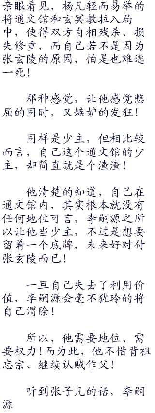没有人知道,他之所以会选择向李克用和李嗣源坦白,并且主动揽下夭师府之事,原因正如李克用猜测的那样,是为了更大的权力和更高的地位,但激发他如此做的.…却恰恰是杨凡!