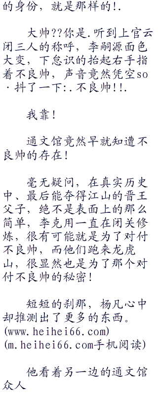 阁下是谁?“当李嗣源凝视不良帅,沉默良久之后才面色凝重之极的开口询问之时,不良帅却看都没看他一眼,目光转向了另一边的杨凡.