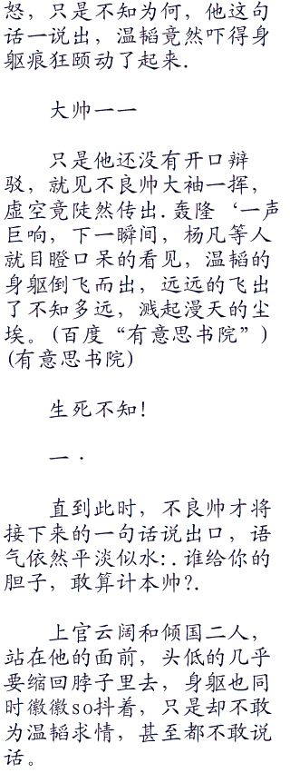 短短几个字,在他口中说来,却犹如在四周掀起了一阵寒风呼喃,在场所有人的心底都下慈识的寒a暴涨,尤其是首当其冲的杨凡,更是浑身剧so!