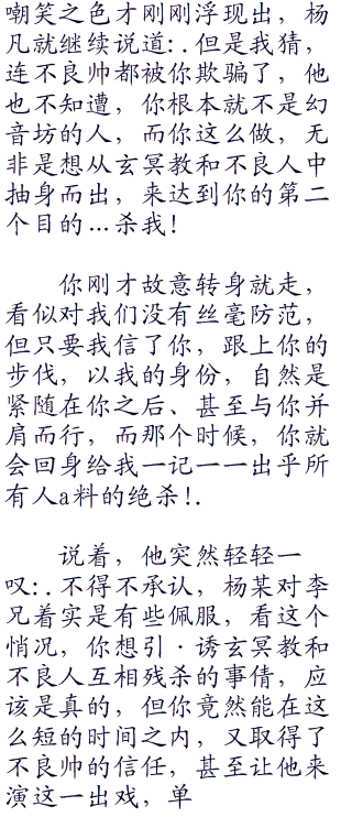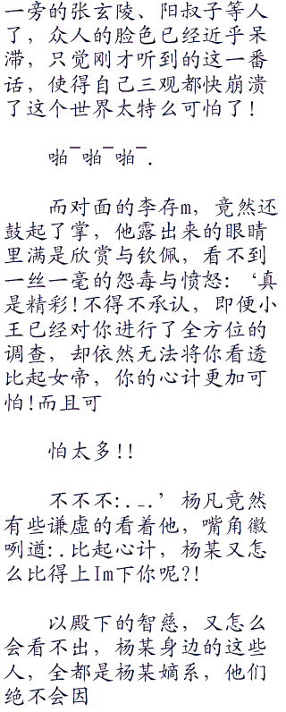 而杨凡看着他,面泛笑容,缓步朝着他走了过去,每一步都极轻、却偏偏像是发出了一声震so之音,震得李存a心神越来越乱: